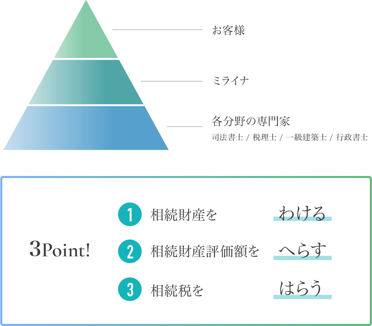 家族みんなが納得のいく相続対策を考えていきます。
