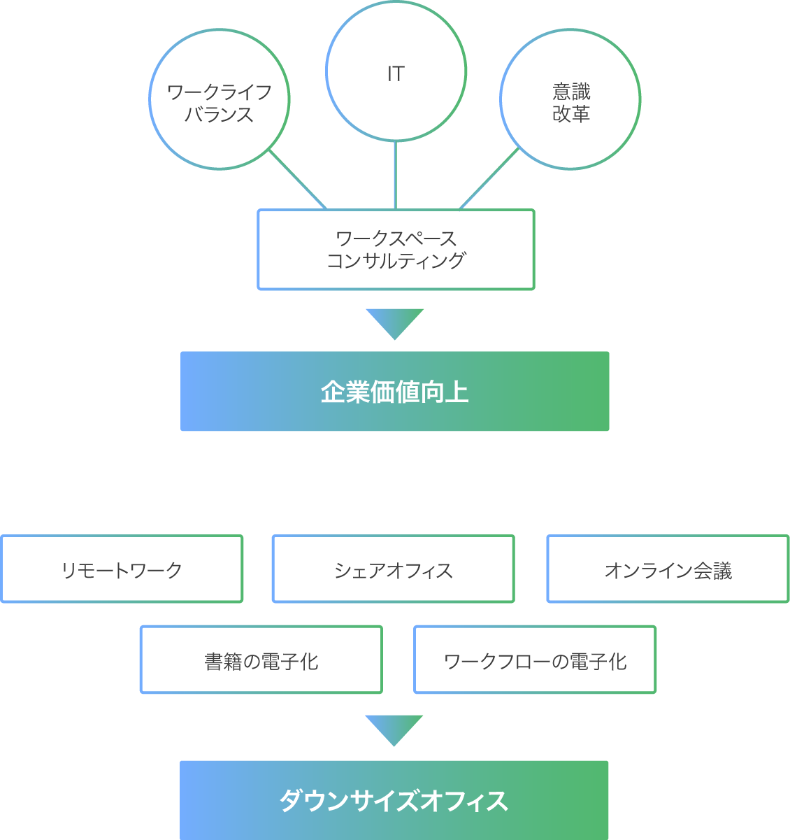 生産性向上、想像力の強化、社員の団結力の